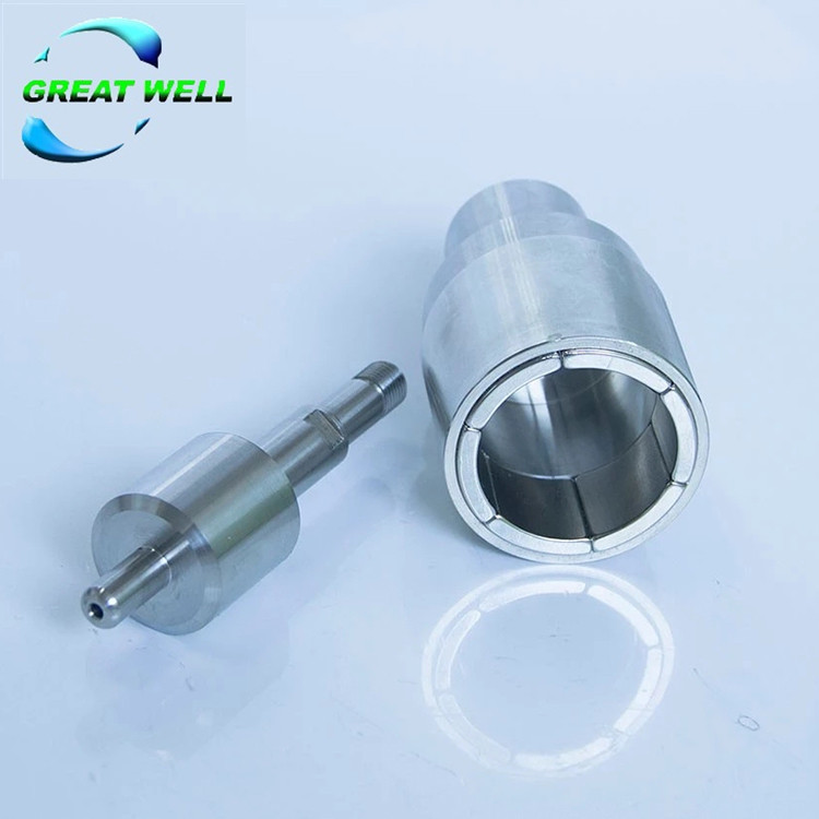 Rotor magnet dalam dan luar dikunci bersama oleh gaya magnet dan bekerja sebagai kopling sinkron.Kopling magnet permanen-permanen tidak menciptakan selip atau arus induksi selama rotasi.Ketika torsi berlebihan diterapkan, magnet akan terlepas, mereka tidak akan berpasangan kembali kecuali pompa dihentikan.